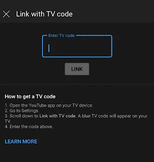 - Choose the option “Link with TV Code.”