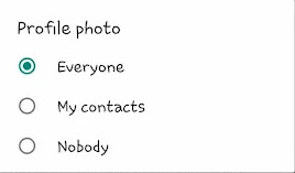Nobody: Anyone else except you cannot view your WhatsApp profile picture. If you want your profile picture to be completely private, you can pick this option.