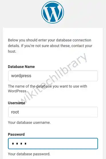 Now you’ll see the installation page for WordPress. Tap the Continue button to choose your language. Then, on the next tab, press the Let’s go button. You must then enter the connection details into the database.
